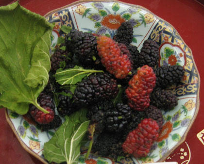 梅雨空に大唐桑の新芽が毎日勢い良く成長する姿は、健康に良い桑を