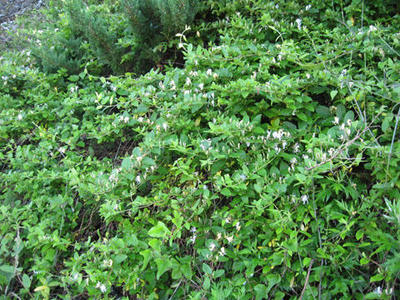 この季節 本吉町大谷海岸に金銀花の群生が見られる。忍冬の花で、白と黄色の花をつける事から金銀花と呼ばれ中国の薬草物語に有ります。薬効は清熱解毒作用があり、熱タイプの風邪薬の処方されます。6月の浜風に甘い香りの金銀花を観察に来てください。