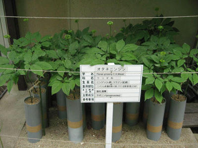 季節的に植物が一番生き生きとした時期で有意義な観察会でした。写真の おたね人参の栽培を筒栽培の実験など薬草園での研究が進んでいる様子が感じられました。東北大学の先生にあらためて、お礼申し上げます。加藤先生お世話様。