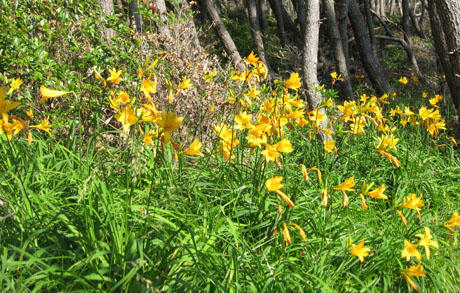 潮風に浜を色どるノカンゾウ